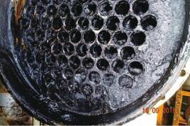 WZ6-12-A2井和WZ6-12-A8井地面生產(chǎn)管匯上加裝過濾器前,通球清管作業(yè)過程中從海管清出泥砂約45kg,加裝新型籃式過濾器后,通球清管作業(yè)清出泥砂量少于10kg。對三相分離器和沉砂儲集罐開罐檢查過程中,發(fā)現(xiàn)三相分離器內(nèi)只沉積了少量油泥和砂,數(shù)量約為往年的1/5,砂儲集罐中收集了約1/3罐(約1.5m3)較潔凈泥砂,未見油污。以前需每10d就對過濾器籃附著的纖維棉進行拆開清洗,而采用新研發(fā)籃式過濾器,使用3個月后進行開蓋檢查,未發(fā)現(xiàn)任何堵塞現(xiàn)象。水力旋流器入口加裝新型籃式過濾器之前,旋流管的出油孔被油泥堵塞 (圖1),嚴重影響水力旋流器含油污水處理效果,加裝之后,打開油腔端蓋后出油孔較干凈(圖2),且拆洗周期由1個月改為2個月。